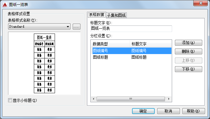 选中此选项时,将显示子集的名称,将图纸列表分成几个部分。
