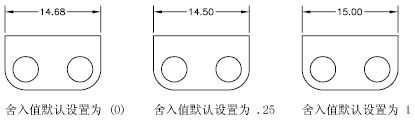 可以对除角度标注外的所有标注值进行舍入处理。例如,指定舍入值为 0.25,则所有的距离都舍入到最接近 0.25 单位的值。小数点后显示的数字位数取决于主单位和换算单位以及尺寸公差值的精度设置。