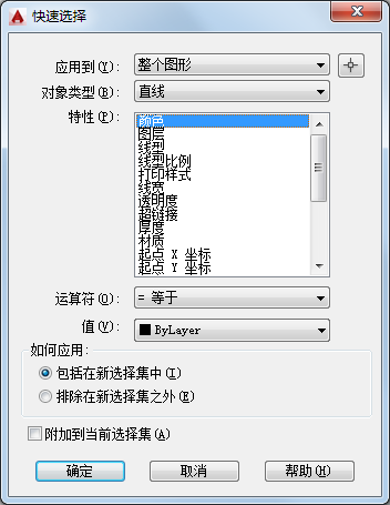 如果选择了“附加到当前选择集”,过滤条件将应用到整个图形。
