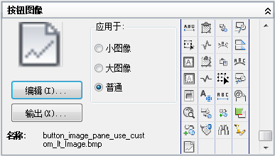 在“按钮图像”窗格中的“应用于”下,选择三个图像指定选项中的一个:“小图像”、“大图像”或“同时应用两者”。然后从图像列表中选择要输入的图像。