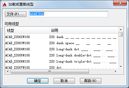 显示当前 LIN 文件名。可以输入另一个 LIN 文件名或单击“文件”按钮,从“选择线型文件”对话框中选择其他文件。
