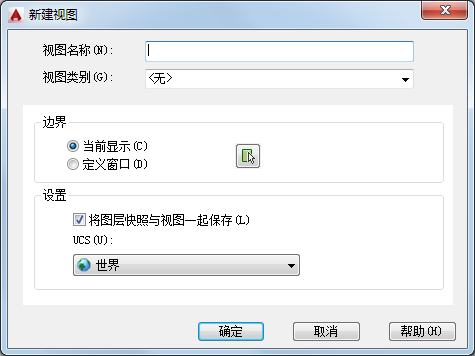 (适用于模型视图和布局视图)指定要与新视图一起保存的 UCS。