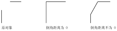 倒角距离是每个对象与倒角线相接或与其他对象相交而进行修剪或延伸的长度。如果两个倒角距离都为 0,则倒角操作将修剪或延伸这两个对象直至它们相交,但不创建倒角线。选择对象时,可以按住 Shift 键,以使用值 0(零)替代当前倒角距离。