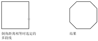对整条多段线进行倒角时,每个交点都被倒角。要得到最佳效果,请保持第一和第二个倒角距离相等。