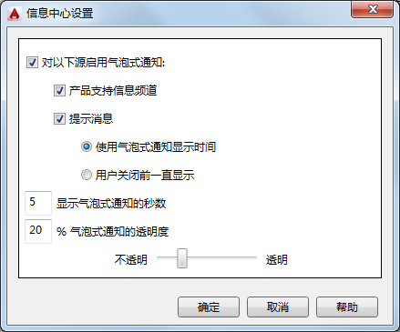 提供选项,用于控制显示在应用程序窗口右上角的气泡式通知的内容和持续时间。