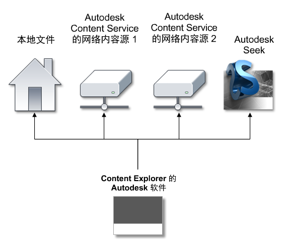 作为独立的服务:您可能想要在网络计算机上添加关注的文件夹,而不必在此计算机上安装完整的 Autodesk 产品。在这种情况下,需在网络计算机上安装 Autodesk Content Service。然后可以使用 Autodesk Content Service 配置控制台来管理关注的文件夹。网络上的 Content Explorer 用户能够搜索并访问它们。