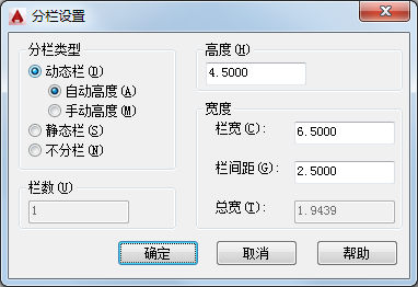 显示并指定控制栏和栏间距宽度值。栏间距值是默认的文字高度的五倍。