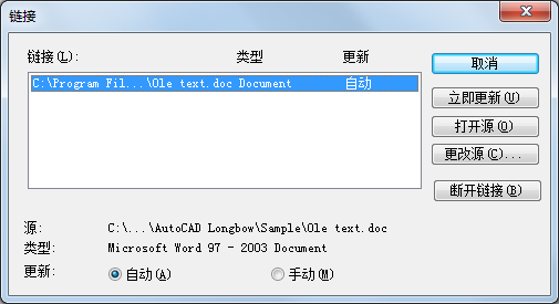切断对象与原始文件之间的链接。将图形中的对象修改为 WMF(Windows 图元文件格式),即使将来修改了原文件,该格式也不受影响。