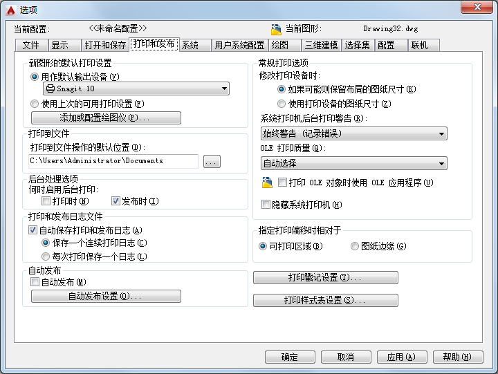 选中此选项后,图形将在保存或关闭图形文件时自动发布为 DWF、DWFx 或 PDF 文件。 (AUTOMATICPUB、AUTODWFPUBLISH 系统变量)