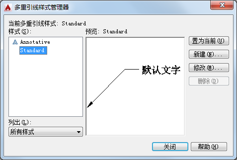 将“样式”列表中选定的多重引线样式设定为当前样式。所有新的多重引线都将使用此多重引线样式进行创建。