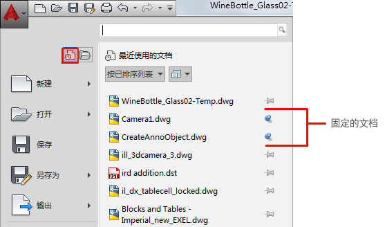 单击文件名右侧的图钉按钮,可以使文件保持在列表中而不考虑以后保存的文件。文件将显示在该列表的底部,直至关闭图钉按钮。