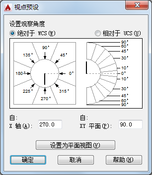 相对于世界坐标系 (WCS) 或用户坐标系 (UCS) 设定查看方向。
