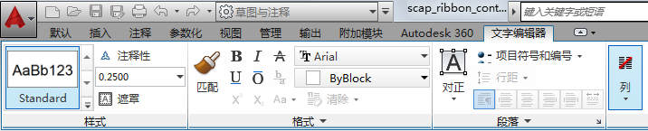 当您选择特定类型的对象或启动特定命令时,将显示上下文功能区选项卡而非工具栏或对话框。当结束命令时,上下文选项卡会关闭。