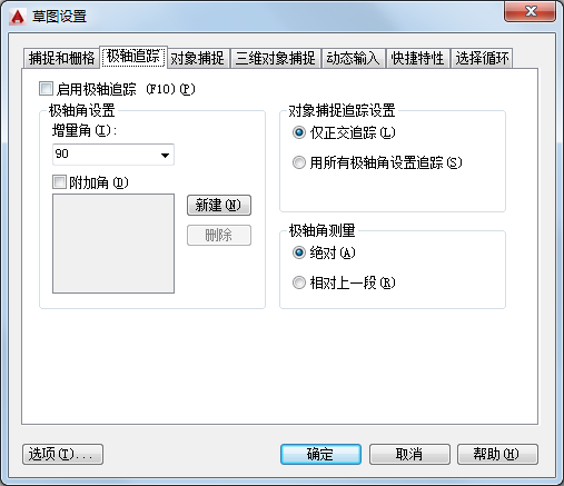设定对象捕捉追踪选项。