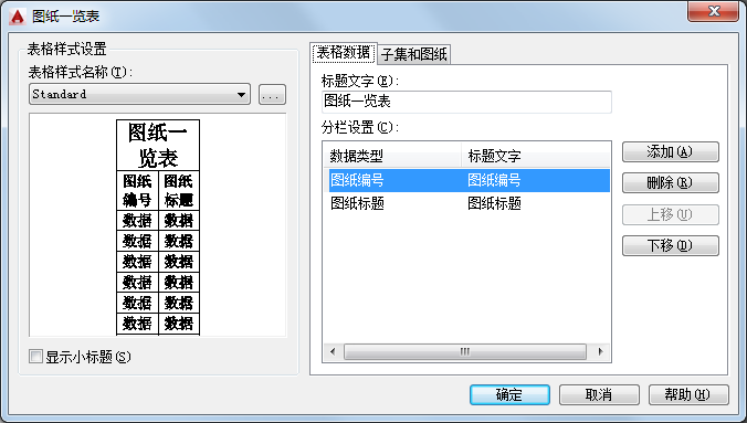 指定图纸列表的标题名称。