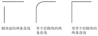 圆角半径是连接被圆角对象的圆弧半径。更改圆角半径将影响后续的圆角操作。如果设定圆角半径为 0,则被圆角的对象将被修剪或延伸直到它们相交,并不创建圆弧。