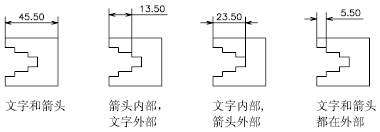 具有足够空间时,标注文字和箭头通常显示在尺寸界线之间。当空间有限时,可以指定这些元素的放置方式。