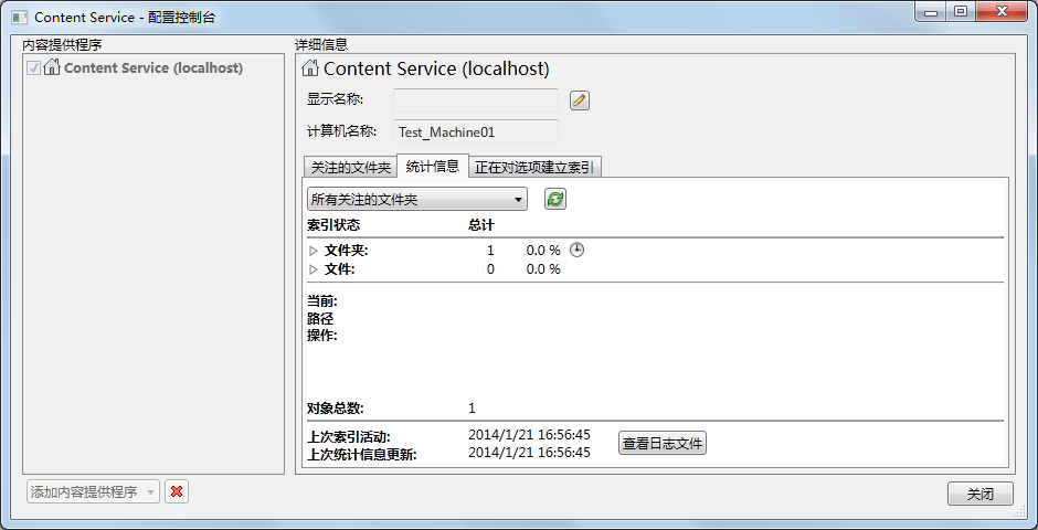 查看已编入索引的文件夹的百分比和相应的文件夹中已编入索引的文件的百分比。