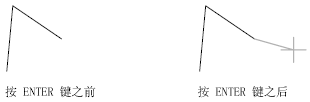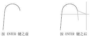 如果最近绘制的对象是一条圆弧,则它的端点将定义为新直线的起点,并且新直线与该圆弧相切。