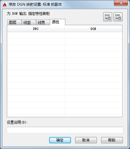 “修改 DGN 映射设置”对话框包括以下选项卡: