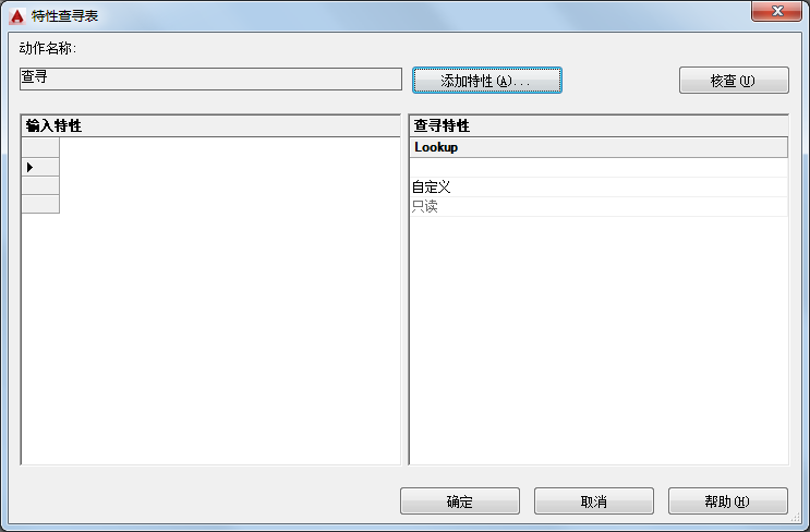 显示指定给输入特性的自定义值。单击查寻列的底部,使查寻特性只读或允许反向查寻。“允许反向查寻”可启用与查寻夹点相关联的下拉列表,通过该列表可更改块参照,以便与表中的输入特性值匹配。