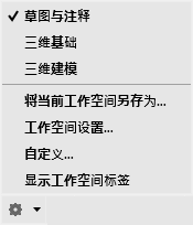 使用工作空间时,只会显示与任务相关的菜单、工具栏和选项板。此外,工作空间还可以自动显示功能区,即带有特定于任务的控制面板的特殊选项板。