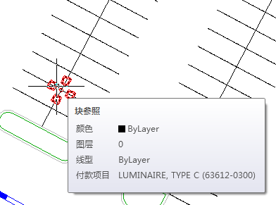 - 在图形中选择其中一个表示停车场灯的块。