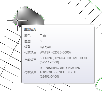 在本练习中,您会将付款项目代码指定给多个 AutoCAD 对象,包括线、块和闭合多段线区域。
