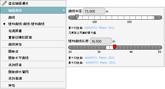 缓和曲线长度值将应用于曲线之前和之后的缓和曲线。
