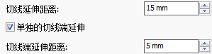 将开放式轮廓起点处的切线延伸距离设置为 15 毫米,将终点处的切线延伸距离设置为 5 毫米