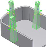 - 注意每个卡扣式连接的四个可能方向都与草图平面的 XY 轴对齐。单击挂钩方向箭头以正确定向每个挂钩。