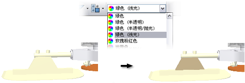 - 在快速访问工具栏中,单击“外观”下拉箭头并滚动至合适的外观,然后单击。零部件实体的外观将更改。
