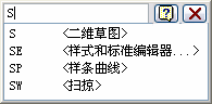 在图形区域中,输入几个字母。将显示对话框。按 Backspace 键逐个删除字母。
