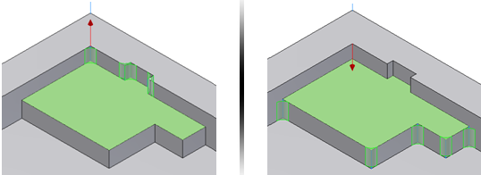 - 对照零件 仅给由特征的表面和零件实体的表面形成的边加上圆角。