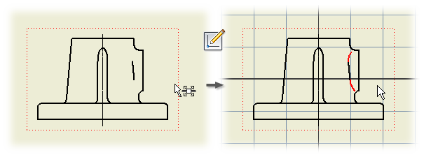 工程图草图可以包含文本和二维几何图元(例如直线和圆弧)。如果在激活草图命令时选择了工程视图,则该草图将关联到视图上。如果未选择工程视图,则草图将与工程图纸相关联。