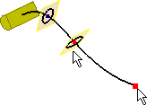 注: 选择某个点后,请勿选择该点附着的几何图元。在此图像中,我们拾取了样条曲线,而不是端点: