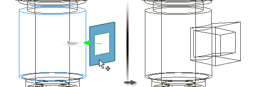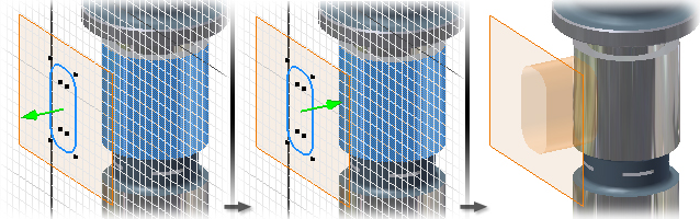 对于部件拉伸,可以选择位于其他零部件的草图点、顶点、面和平面。若要被选中,工作平面和工作点必须与正在创建的部件拉伸位于相同的部件级别。