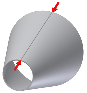 - 在曲面边上选择一个点。选择的点可以是边的中点、面顶点上的端点、工作点或者先前所创建草图上的草图点。