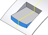 “反向”可反转平台体/挖空体的方向。正确方向通常为指向目标实体内侧的方向,除非选中了“两端”选项。目的是保留实体外侧的平台面截面轮廓。