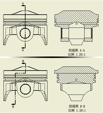 剖切线的长度定义剖视图的范围。如果剖切线只穿过模型视图的一部分,则创建局部剖视图。