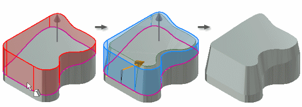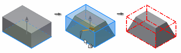 在以下示例中,底面是固定的,拔模方向设定为向上。系统以底面为支点,按开模方向去除材料。