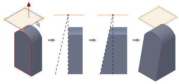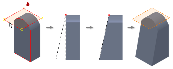 在以下示例中,选择偏移工作平面作为固定平面。所选面以固定平面为支点,向模型添加材料。