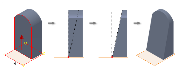 向面应用拔模斜度时,拔模方向与固定边、面或平面之间的关系将决定操作的结果。