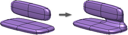 “桥接”可以在自由造型模型中连接实体或创建孔。使用“桥接”编辑自由造型实体时,可以通过指定要桥接的面来创建平滑连接。