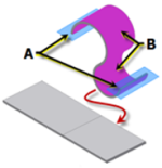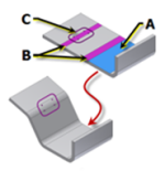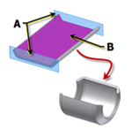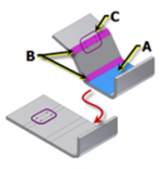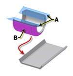 指定要展开或重新折叠的所有折弯或卷曲特征。在插图中可用选项标有 B。
