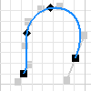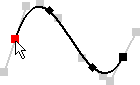 插值样条曲线穿过一系列点,称为拟合点。出于视觉分离目的,样条曲线端点是方形的,而样条曲线拟合点是菱形的。