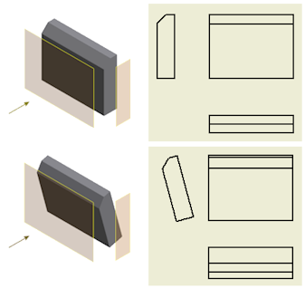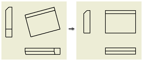 在位对齐视图沿既相对非水平也非竖直的轴或边进行对齐。例如,投影的等轴测视图可以与其父视图在位对齐。如果父视图被移动,在位对齐视图也将移动,以保持与父视图X轴的夹角不变。可以在工程图上的任意两个视图之间创建在位对齐。