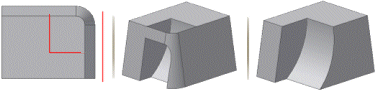 匹配轮廓通过延伸截面轮廓的开口端,直到它们与实体相交,可以封闭开放的截面轮廓。如果截面轮廓的草图平面位于某个平面上,则使用该平面的回路来闭合截面轮廓。否则,使用截面轮廓平面与实体的交点定义的边来闭合截面轮廓。如果开放的截面轮廓的两个端点都与实体或旋转轴相交,则存在一个有效的截面轮廓。混合设置无效。创建封闭的截面轮廓时,请为截面轮廓选择“要保留的边”。 |