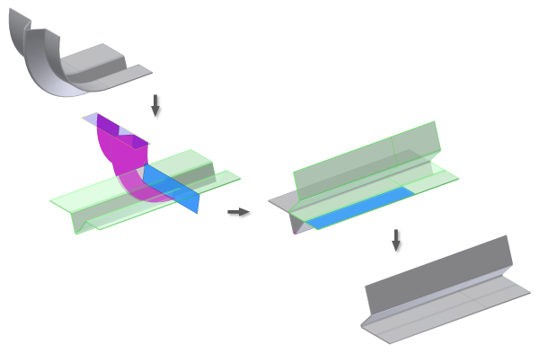 您可以对未旋转的展开模型继续建模。当应用了两种重新折叠特征以将模型还原到原来的卷曲形状时,应用了此横向折弯的任何特征都将变形。