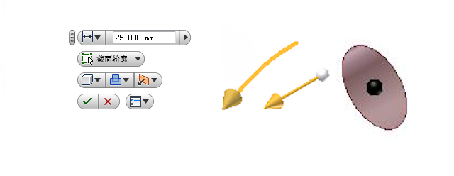 图形区域内显示悬浮在图形窗口上方,以支持直接操纵操作。它通常包含小工具栏,小工具栏中特别备有命令选项、操纵器和值输入框。小工具栏使您可以与三维模型进行直接的、可预测的交互。“确定”和“取消”按钮位于图形区域内显示的底部,用于确认或取消操作。
